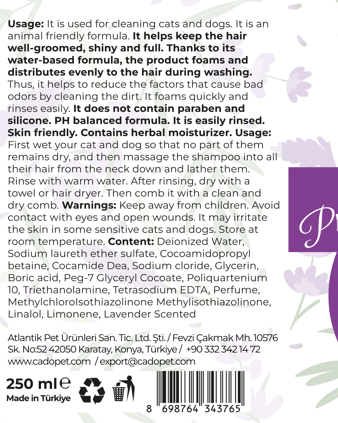 Pet Shampoo Lavender Sciented 250ml